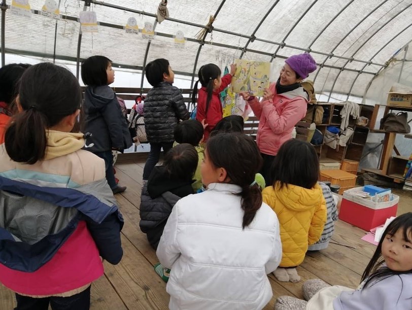 「何をするにもまずは設計図を」ということで、巻尺で寸法を測る子もいたり、自然に車座になり話し合いが始まったり。年齢に関わらずどの子も意見を伝え合います。やすさんも話し合いに加わってからは、竹の棒とダンボールと紙粘土を用い、実際に作るイメージを描きました。建築現場で基本の「基礎を平坦にする班」と「木材を切る班」に分かれ作業スタート。パレットや木材を運ぶのにもみんなの協力が要ります。ノコギリで切るのも疲れたら代わる、ひたすらシャベルで掘って踏みならすなど、チームワークもよく、みんな顔がイキイキ!この小屋の名前も『とくべつなグリーンハウス』とこども達に命名され、看板もできました。中に暖房を入れたりベットや机、またドアもつけよう!と盛り上がっています。作ることを味わい、その過程を大切にしていきたいと思います。寒い日ではありましたが、身体を目一杯動かし、遊んだり作業したりと心と共にぽかぽかになった1日でした。